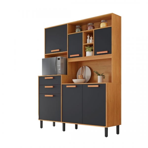 Informações do produto: Kit Cozinha 6 Portas 2 Gavetas Júpiter - Cinamomo/Grafite